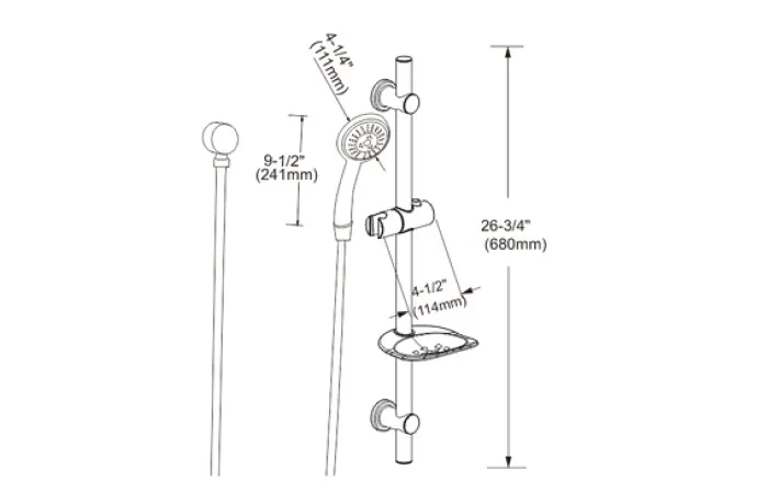 Latoro Chrome Hand Shower with Rail Technical Drawing